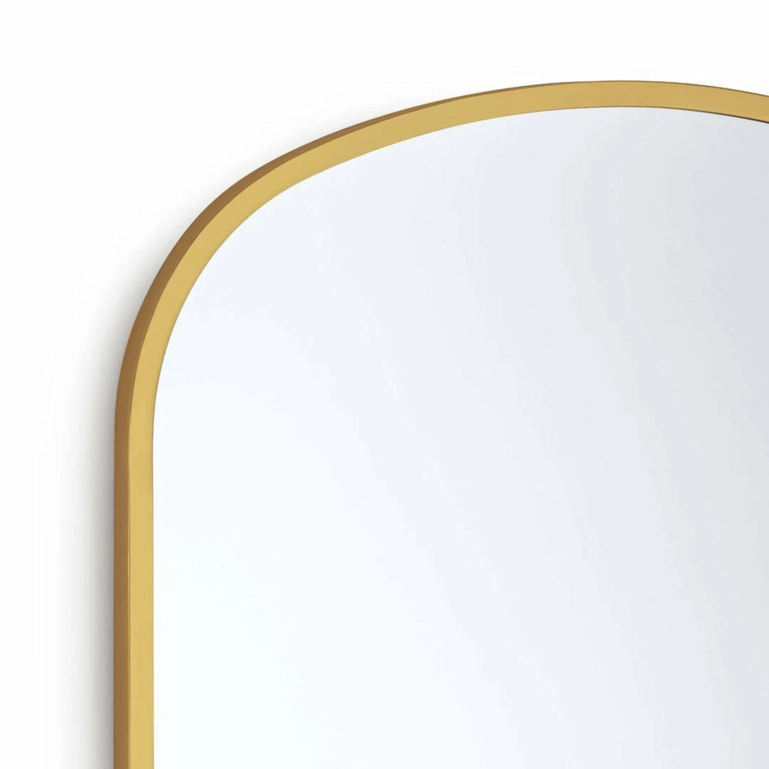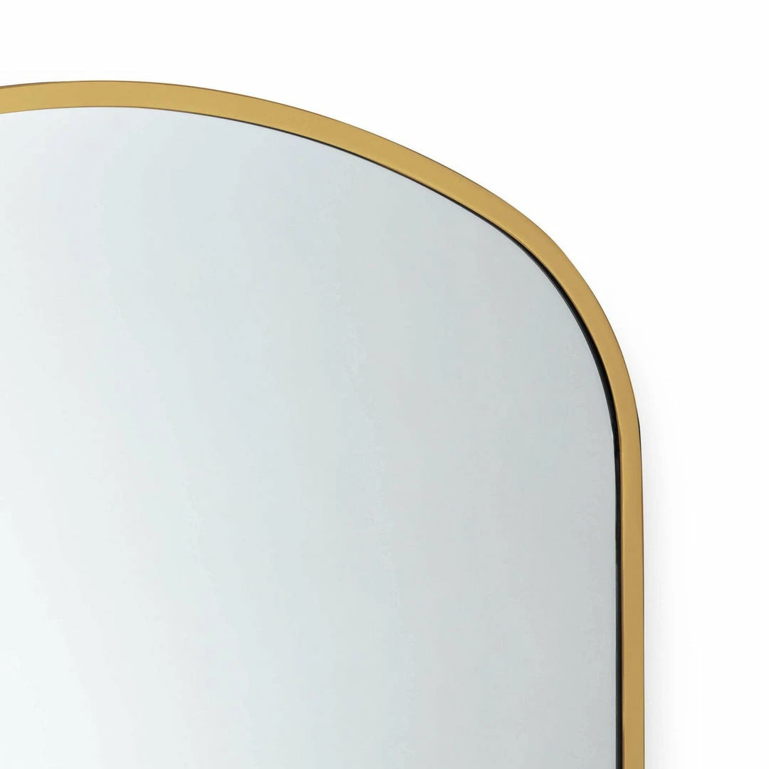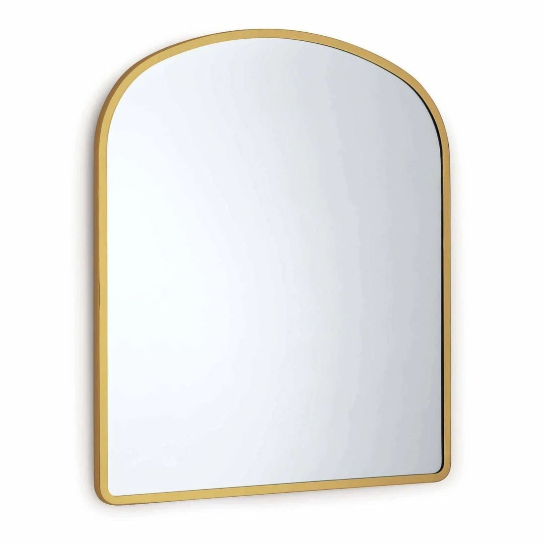 A simple, arched metal frame creates a wide mirrored area to create beautiful depth and dimension in your space. Place this mirror in a bathroom, entryway, or bedroom for a simple and sophisticated look.