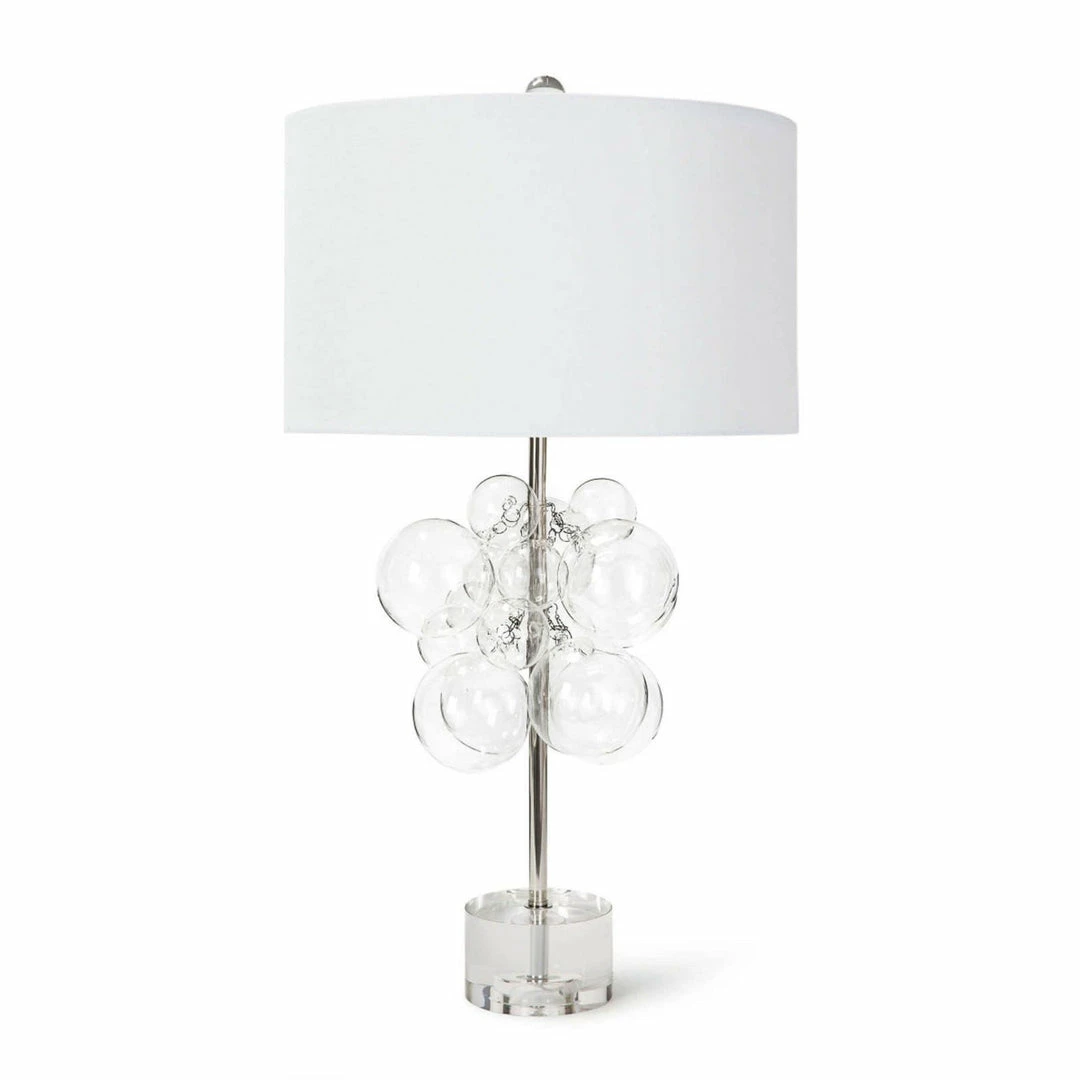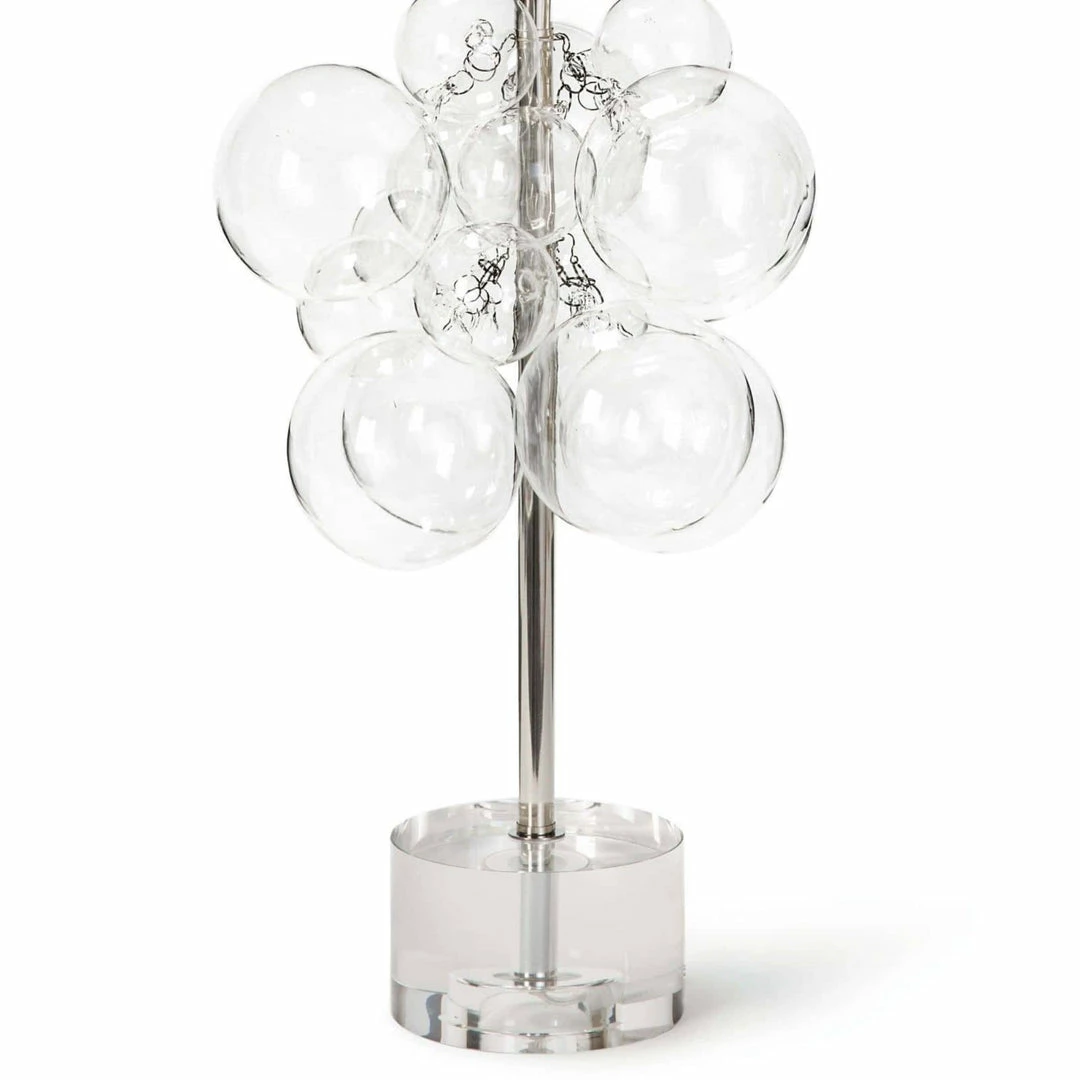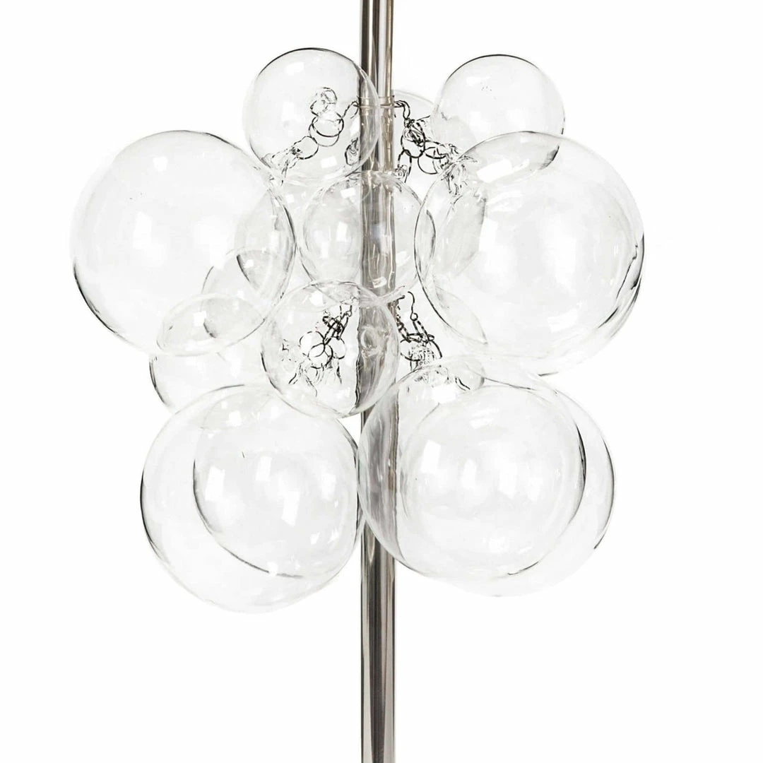 Clear glass spheres adorn the skinny polished nickel rod base, and the crystal pedestal sets the whole piece off luxuriously. Show off your fun side by installing this lamp in a living room for an unexpected detail.