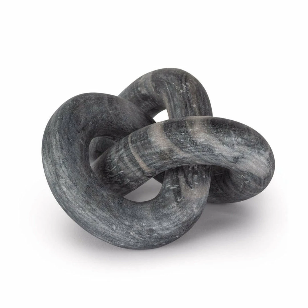 Hand-carved from a single piece of stone, this abstract sculpture weaves about creating a flowing singular form. Add this modern tabletop accessory to your living room or bedroom. Available in Black and White Marble.