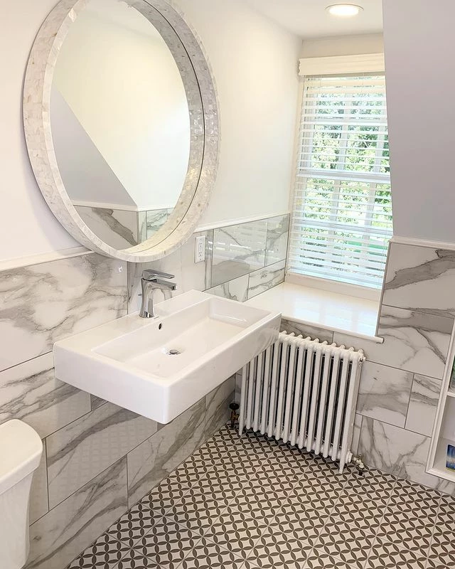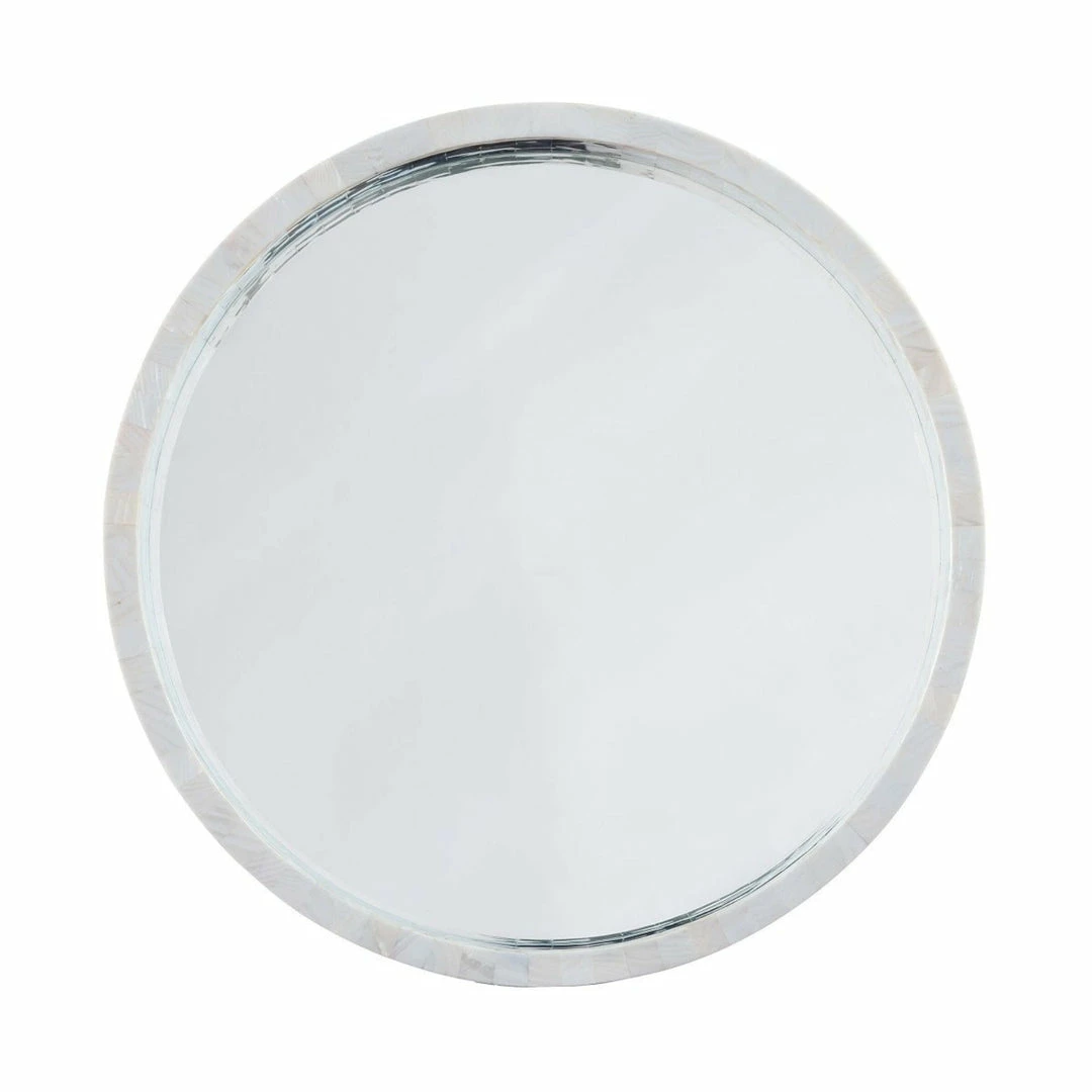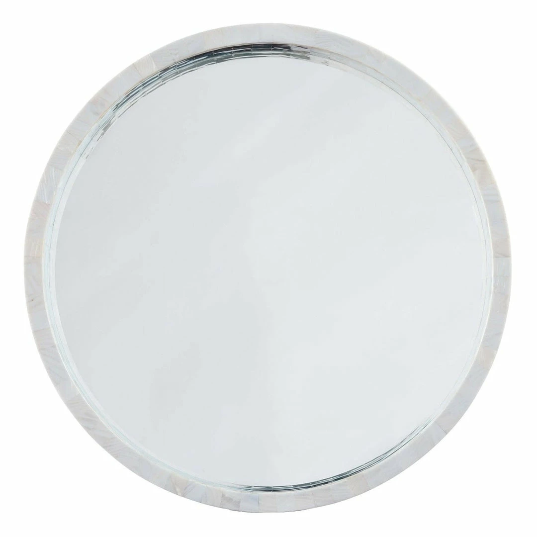 Ivory mother of pearl edges surround this modern mirror, lending a touch of subtle multi color and natural beauty. Versatile and timeless, this piece is perfect for brightening up your space. Available in Large and Medium sizes with natural finish.