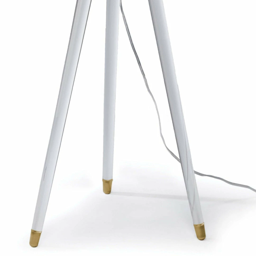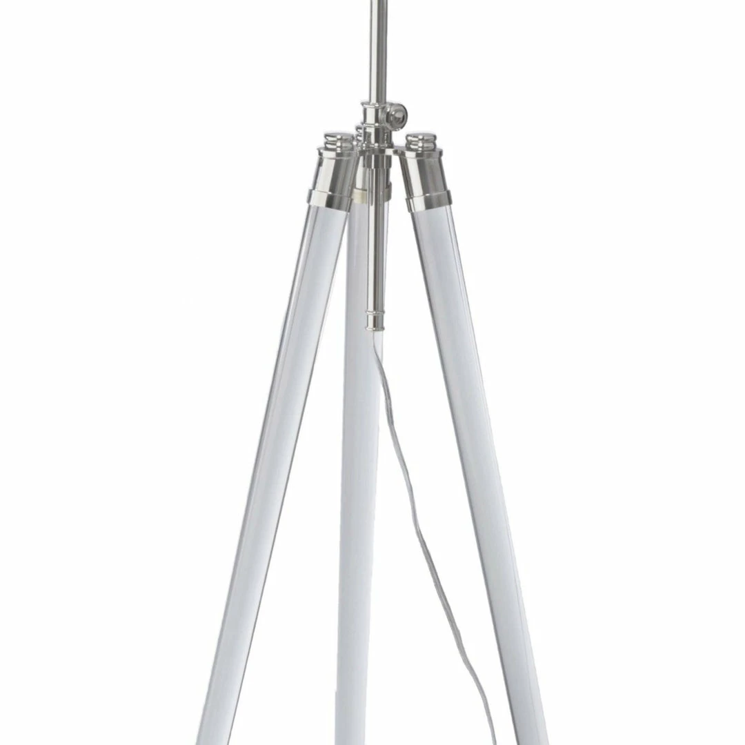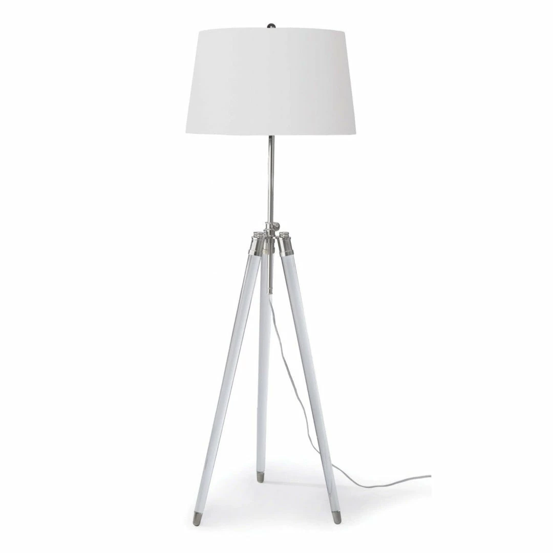 Adding a modern touch to a variety of decor, the Samantha Floor Lamp is a stylish small-space solution. Natural brass or polish nickel hardware complement the natural linen tapered shade, the look is completed with the tripod acrylic cylinder legs, and natural brass/polish nickel feet.