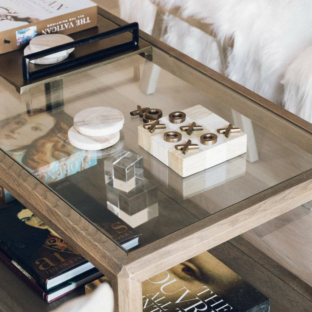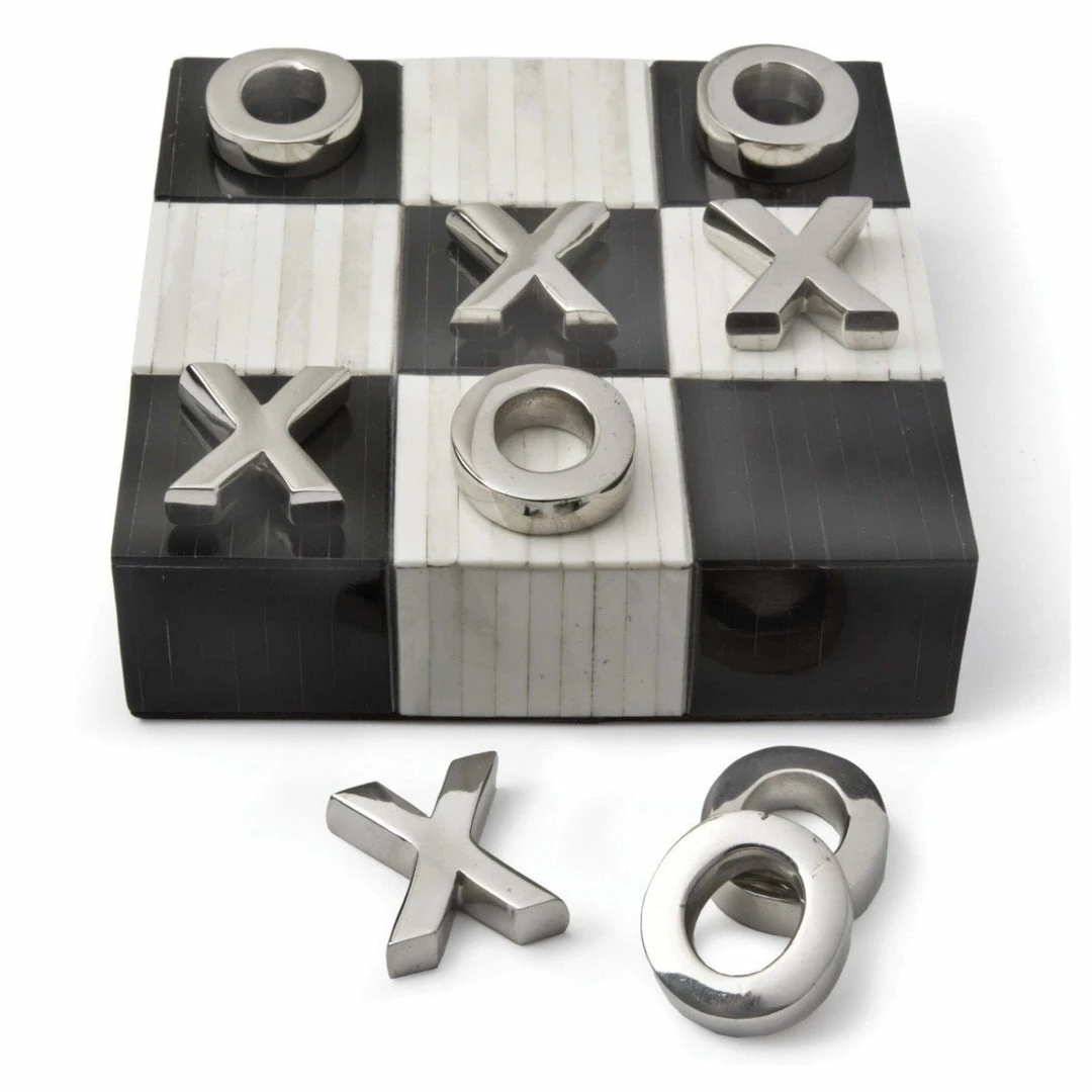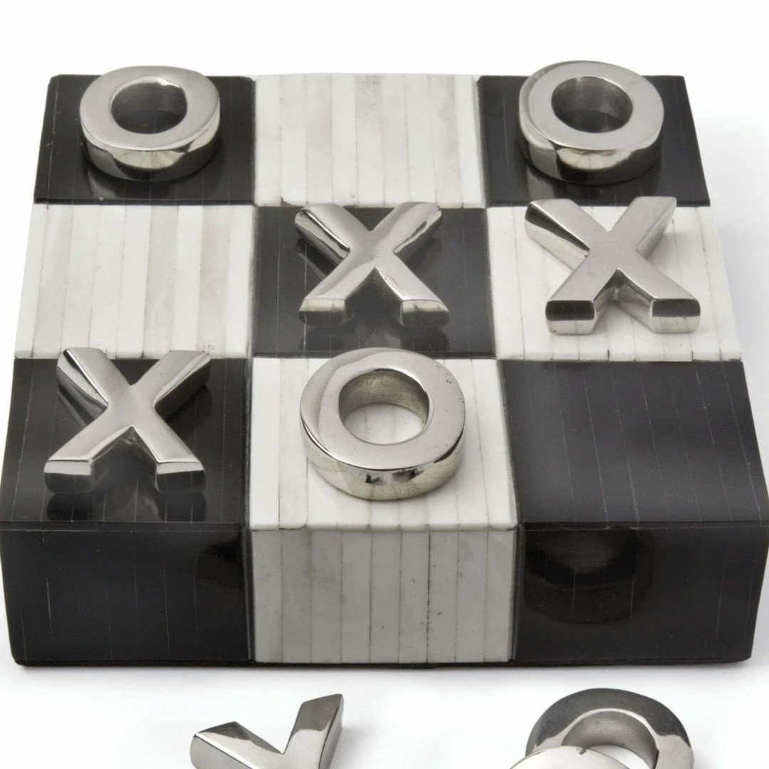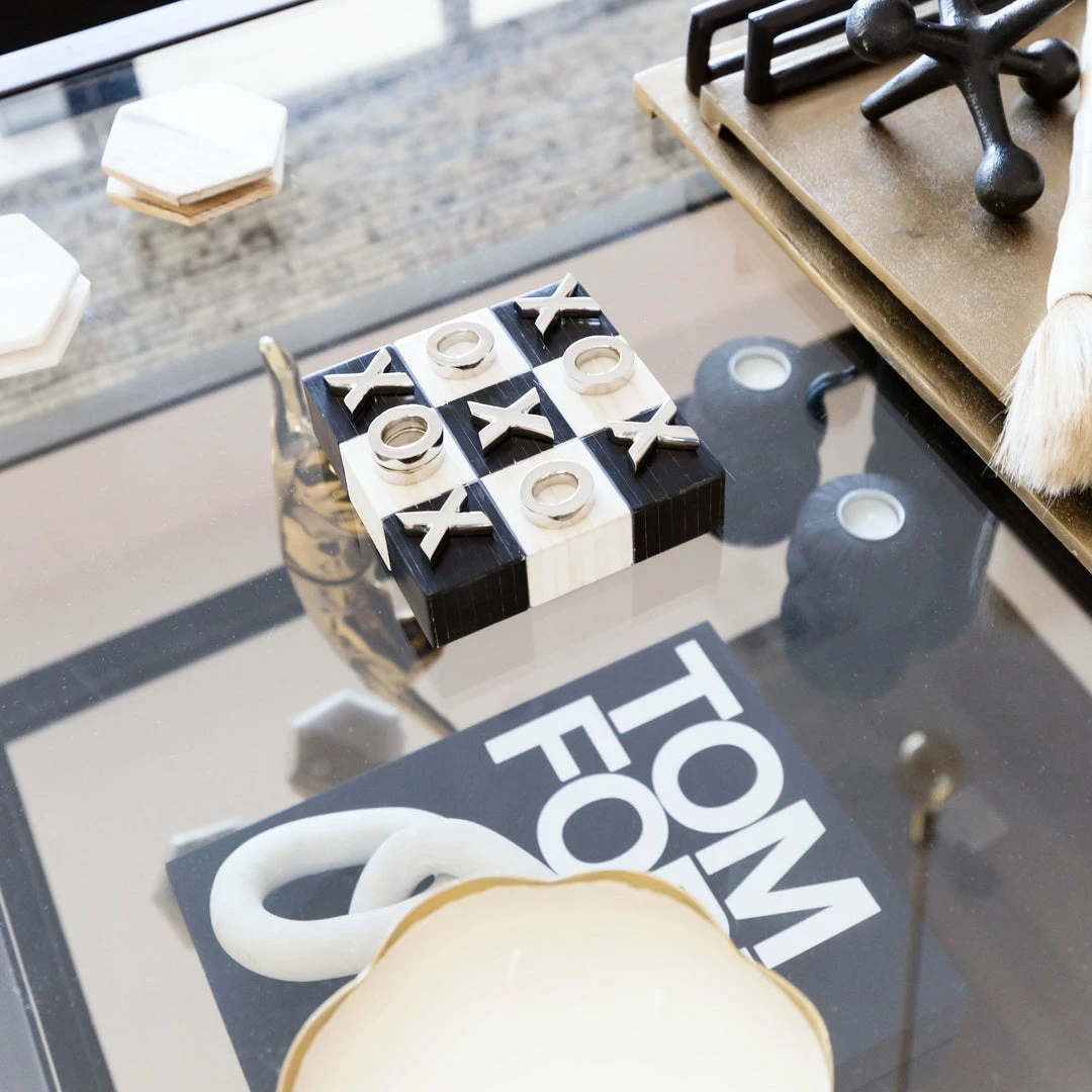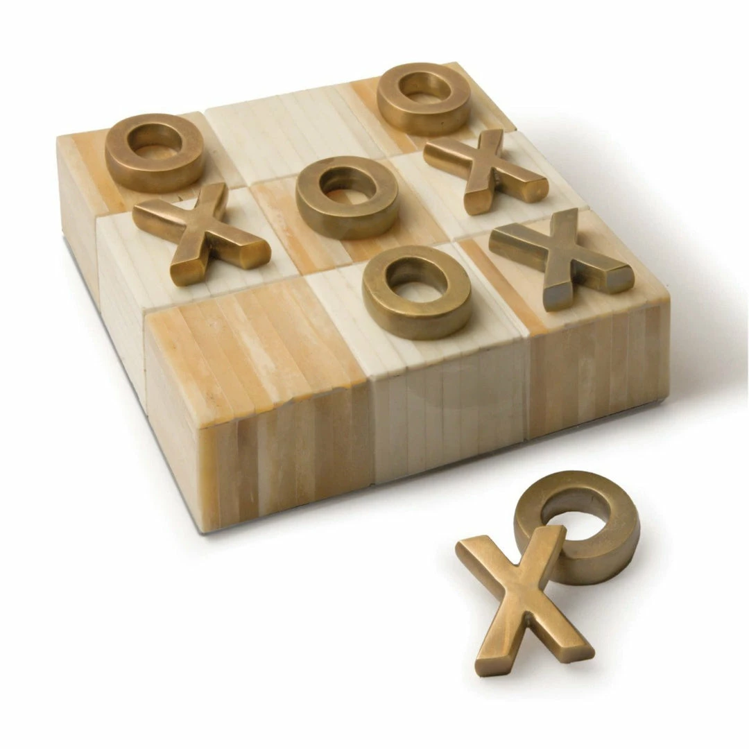 A classic game turned décor. This stylish and functional Tic Tac Toe game is played with polished nickel X’s and O’s on a natural-finished bone board. Available in Brass and Nickel. Bone material with natural finish.
