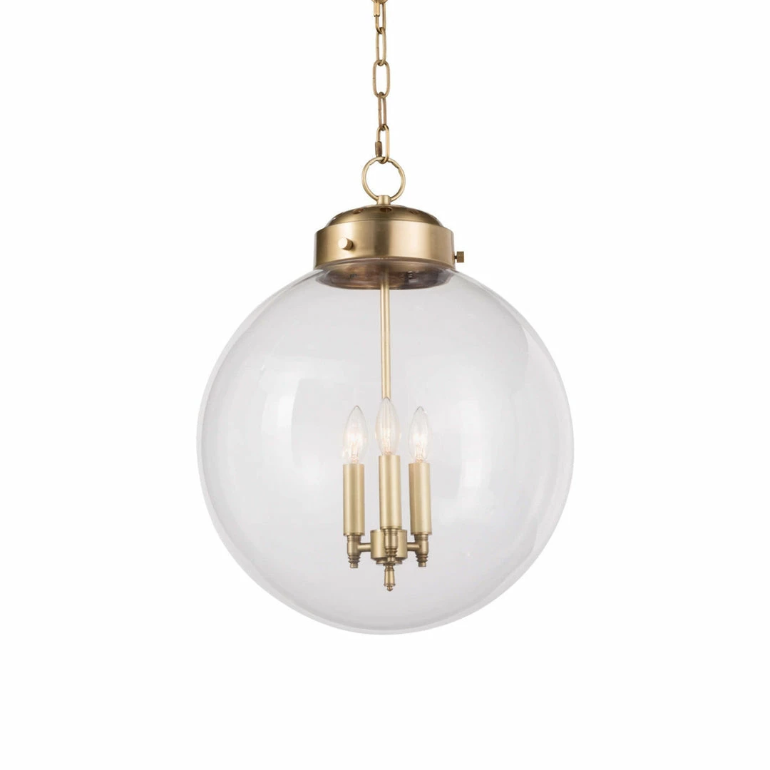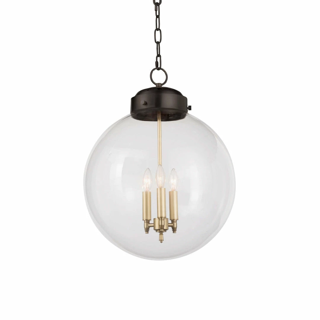 Circular glass globe pairs with three candle styled cluster to lend sculptural, contemporary style. Its clean lines and minimalist silhouette illuminate a range of spaces from entries and hallways to kitchens and dining rooms.ย ย Available finishes in Polished Nickel, Natural Brass, and Oil Rubbed Bronze.