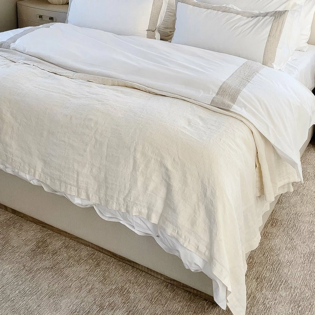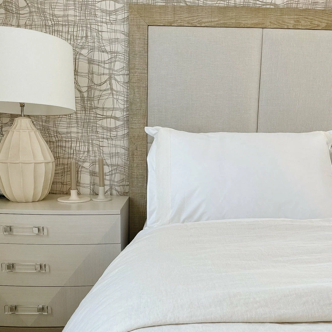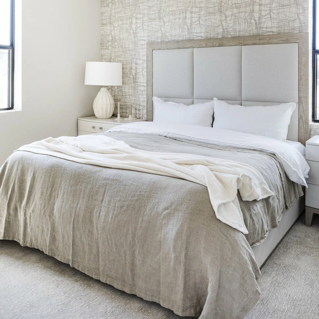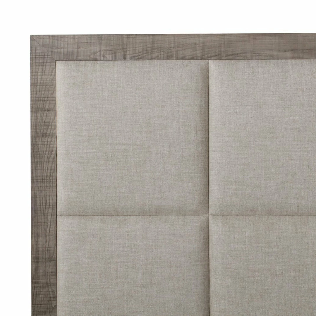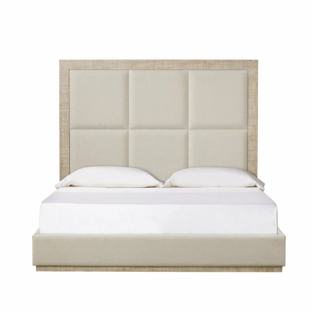 Designed with luxurious rest in mind; where elegant parson forms, fine lines, and textured parchment finishes give way to retreat living. This bed brings light and breezy air of sophistication to any bedroom with the use of ash solids with beautifully finished ferrules and a contemporary linen upholstered headboard.