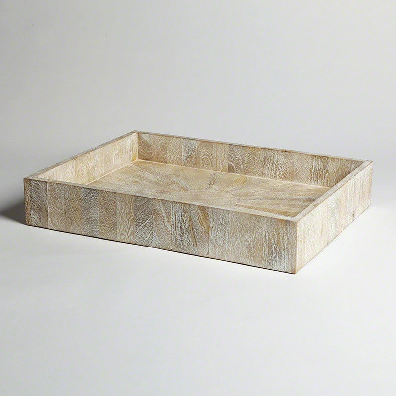 Inspired by the soft sandy hues of driftwood, the surface pattern of this collection is achieved by building each piece out of individual, precision-cut pieces of mango wood. Although each is a tour de force of carpentry, the effect is effortless and casual. To achieve a distinctive sun-bleached look, the pieces are first lightened and then given a subtle creamy wash.
