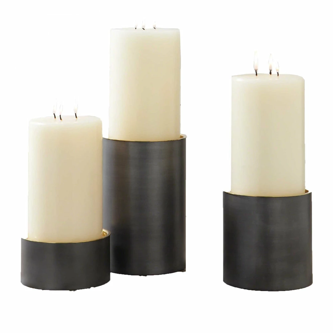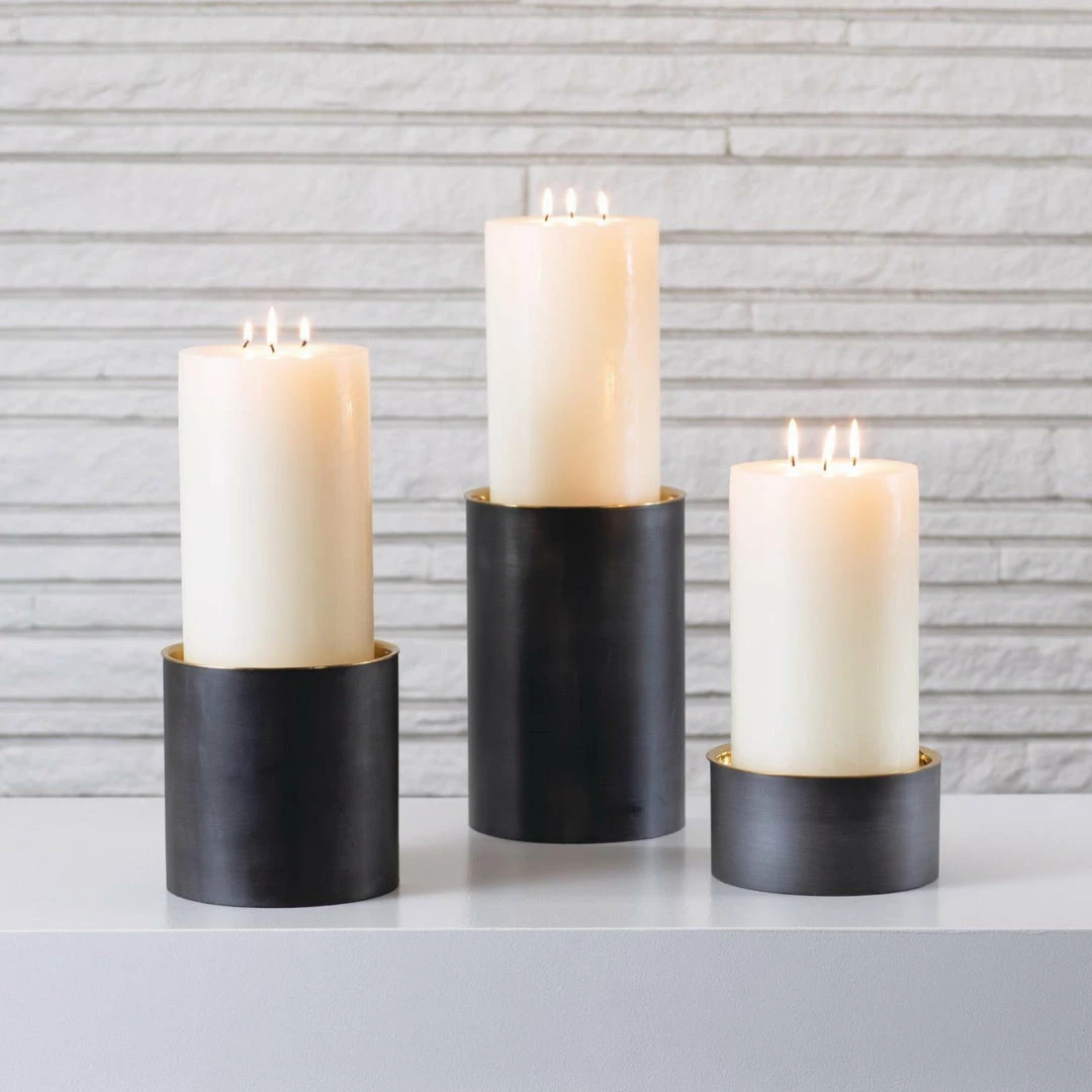 Spun Zinc Finish, Shiny Brass Interior, Candle Not Included, Holds A 5″D Pillar Candle and Available in Small, Medium, and Large