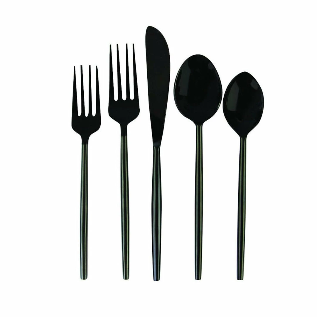 Set of 5, Black Flatware. Hand wash only with mild soap.