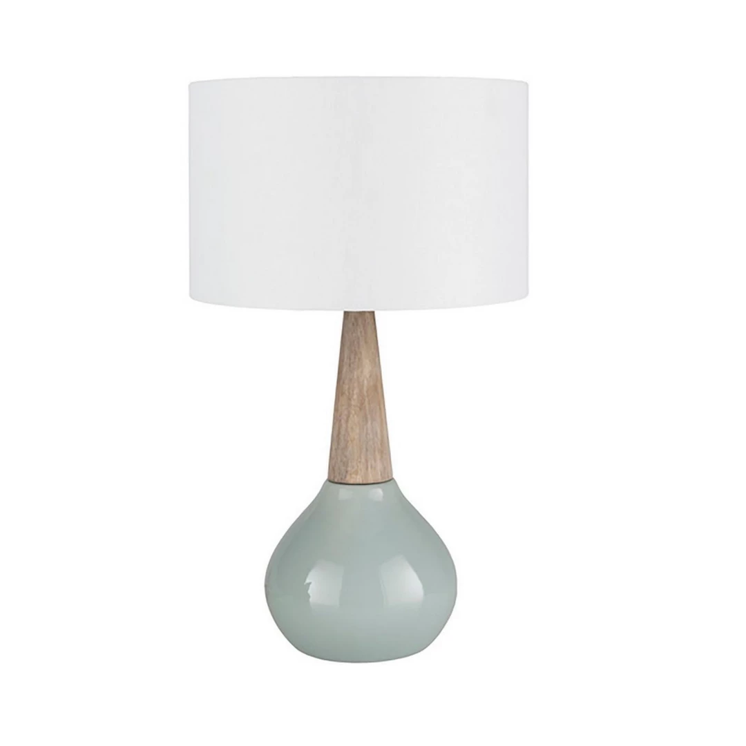 Table Lamp, Available in 3 colors Glazed White, Glazed Gray and Glazed Seagrass, Ceramic Body,White Linen Shade,