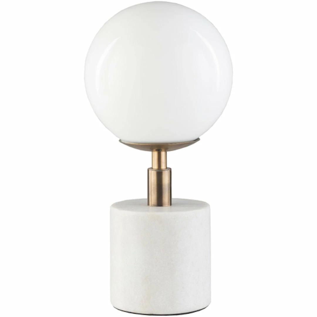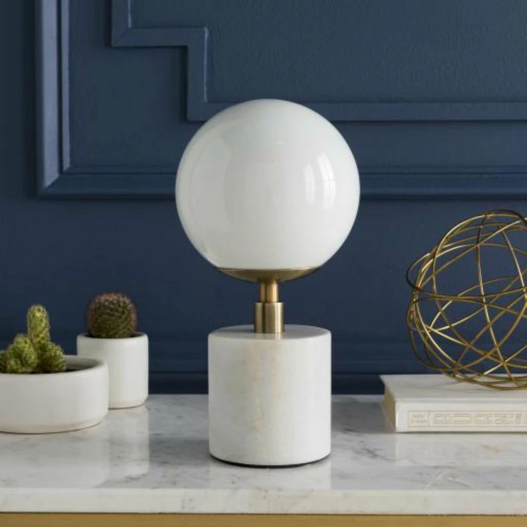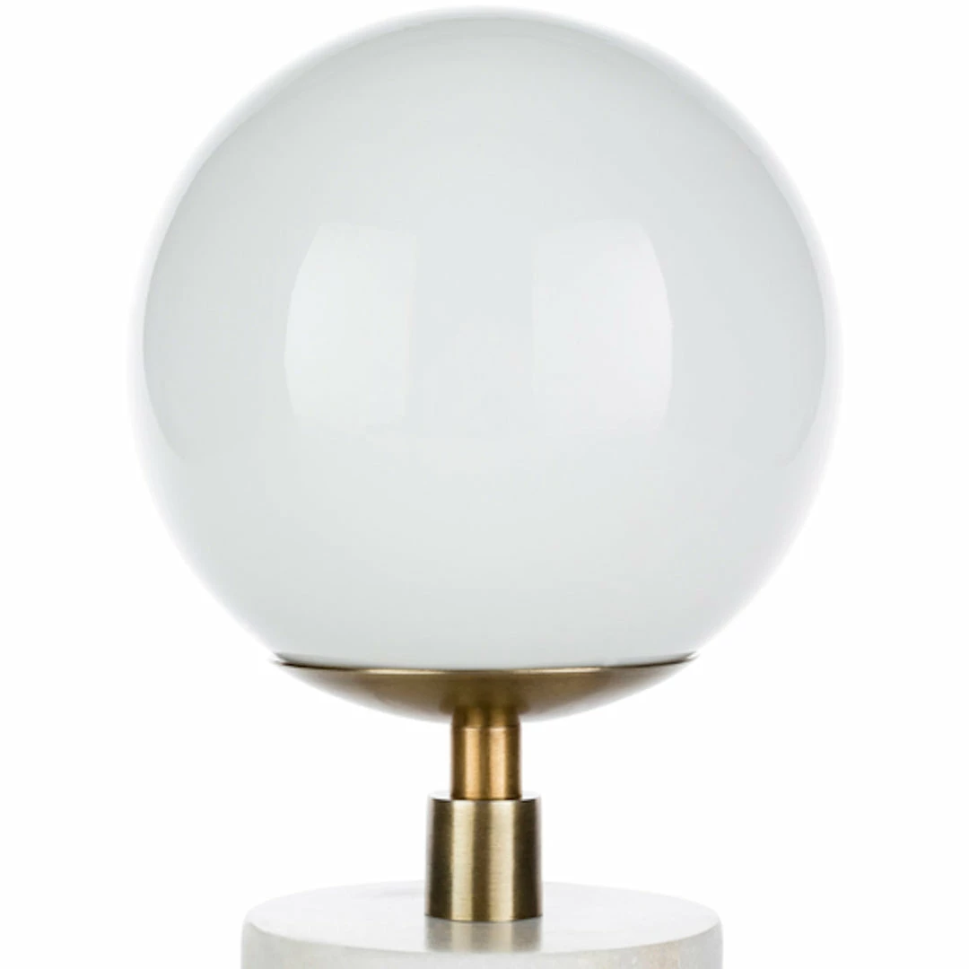 Table Lamp,ย Natural Metal Body,ย Milk Glass Shade,ย Natural Marble Base