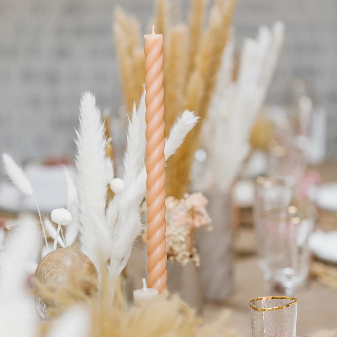 Our Fancy Taper Candles are hand-molded and embody a superior depth of color. A cotton wick is used for the cleanest burn, and the base is sized to fit a standard holder. Each candle is crafted to burn for hours. Subtle variations in wax depth and color opacity may occur.ย ย Sold as 1 box (set of 2)