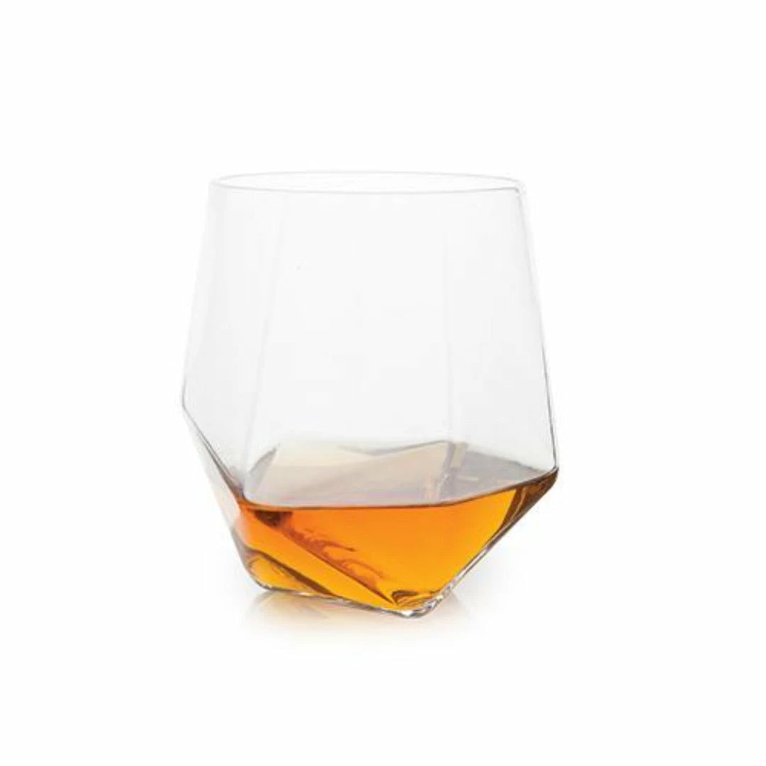 Splitting off from a triangular base, nine trigonal sides make our multi-faceted crystal tumbler uncommonly captivating. With each face sending prismatic light in splintered rays through your liquor, the glass itself rounds out smoothly as it reaches the rim for the perfect sip.