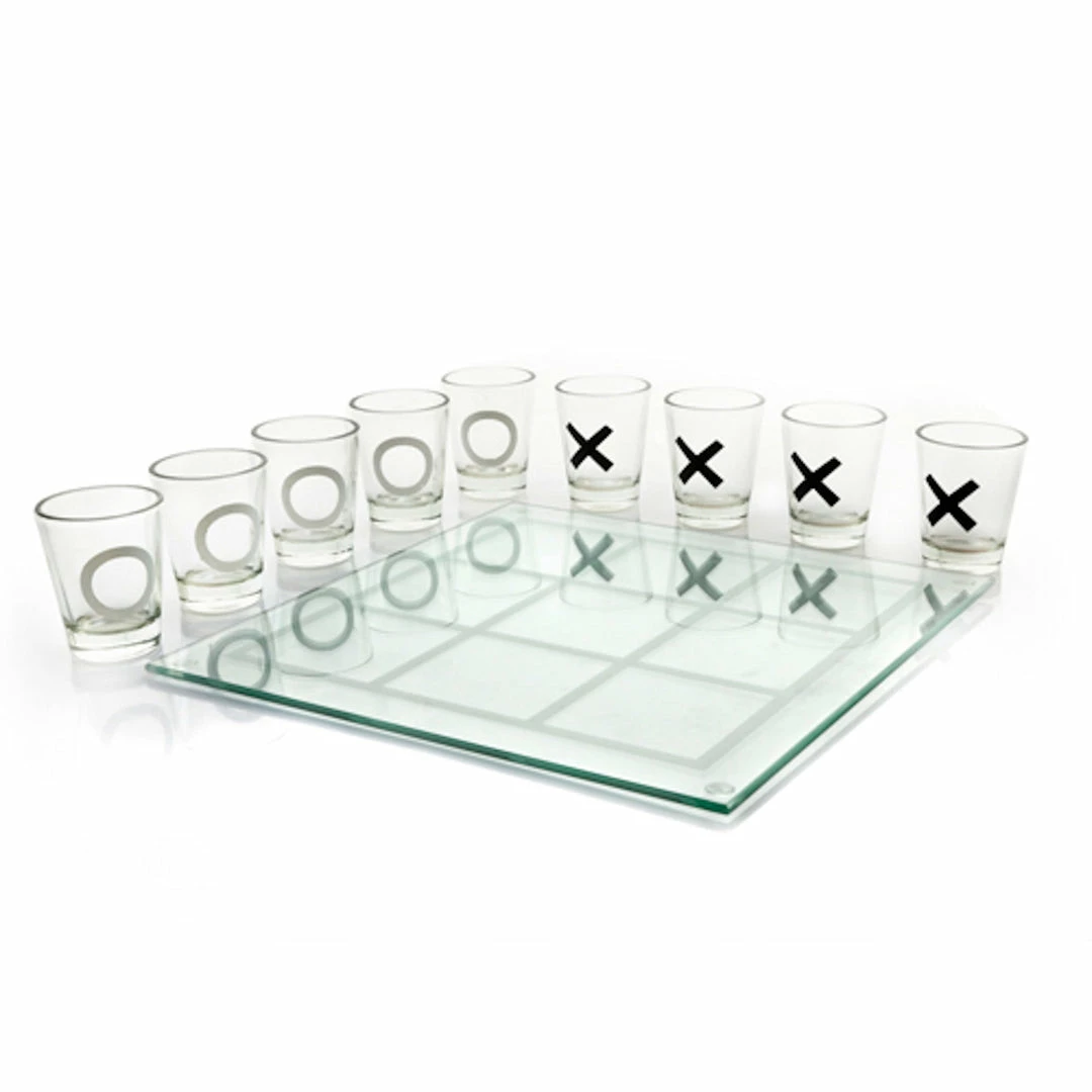 The stakes just got higher and Tic Tac Toe just got fun. Tic Tac Shot!™ transforms the classic boredom buster into a risky grown-up game of skill. Made of glass and hand wash recommended. Game includes 1 board and 9 shot glasses.