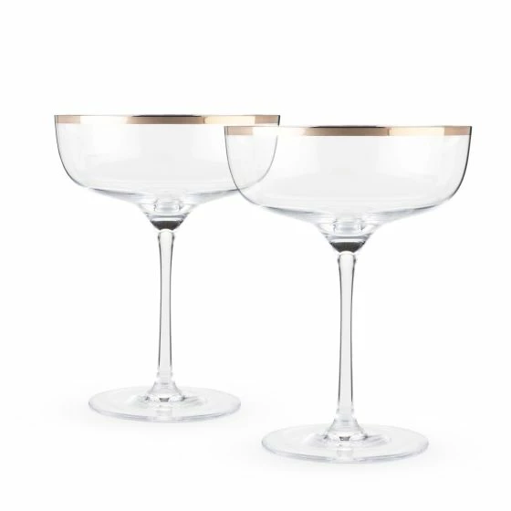 Sip champagne in a decidedly decadent fashion. Reputed to have a strong association with the likes of Marie Antoinette and prohibition-era indulgence, these copper-rimmed coupes are a charming throwback to old-fashioned elegance and persevering refinement.ย Crafted from lead free crystal.