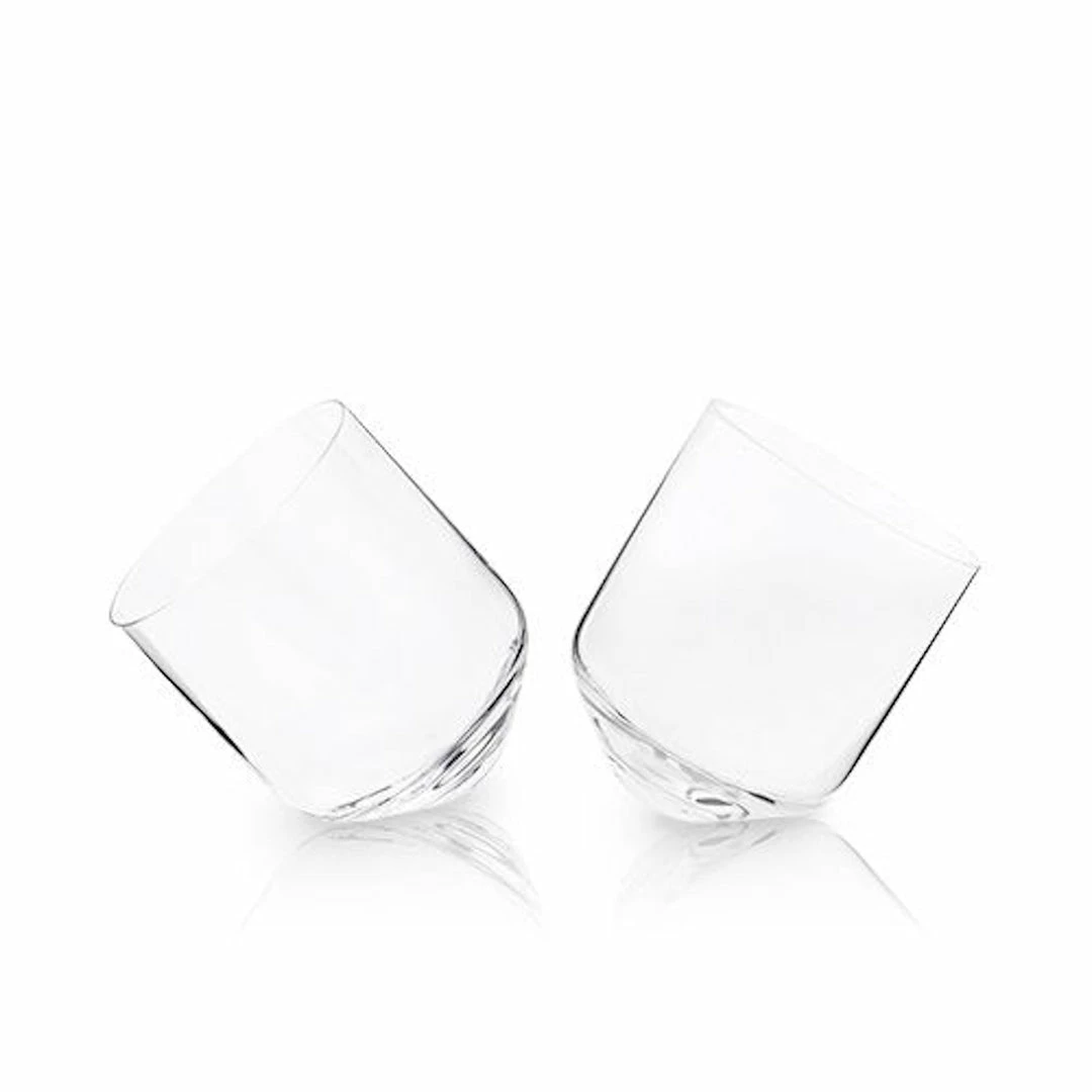 A dynamic drinking experience, these rolling whiskey tumblers aerate spirits, releasing aromatic compounds. The tilted glass is also a perfect vessel for sphere shaped cooling methods, whether ice or rocks. Crisp lines and brilliant crystal create a refined look while letting the luster of a high quality spirit shine through. Lead free crystal and dishwasher safe.