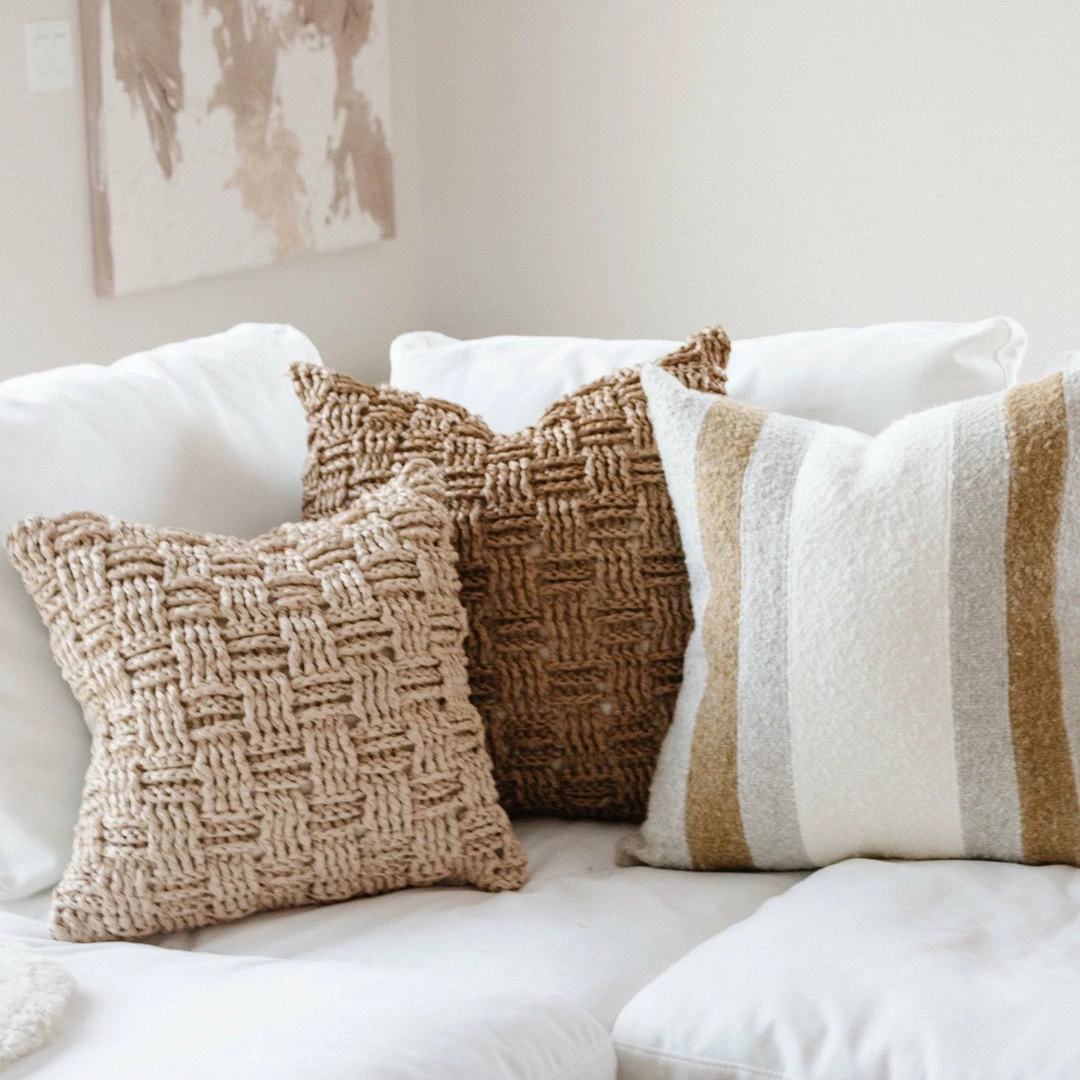 The Basket Pillow is a woven masterpiece. Made with natural materials and handwoven in a patchwork shape, this unique throw will give organic life to refresh your space.ย This pillow is filled with a high-quality down insert for maximum comfort and shape. The cover can be removed for cleaning by a concealed zipper.