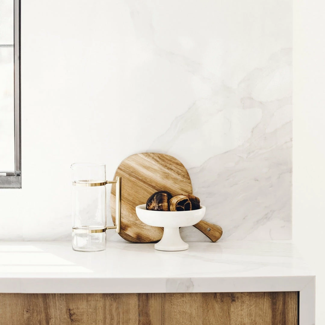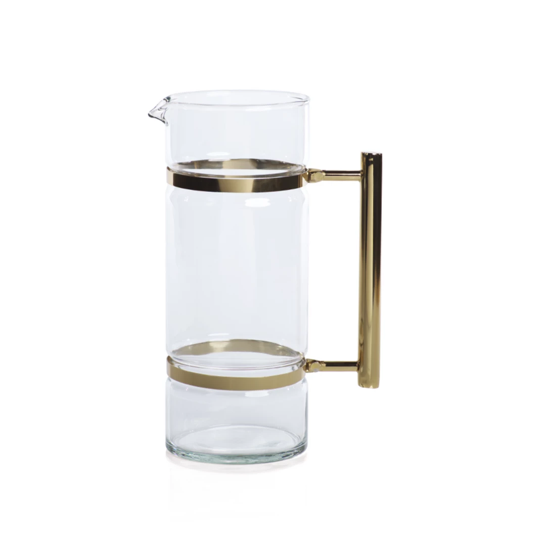 This brass-trimmed pitcher with sleek lines helps elevate your bar area with a modern sophisticated look.